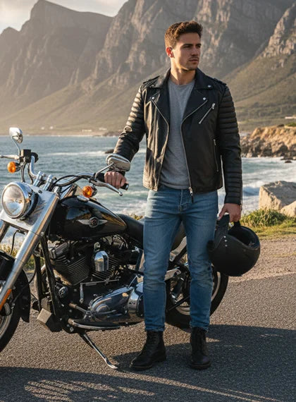 A quilted jacket is the kind of jacket every guy needs when the weather gets cooler. It feels warm but not heavy, so you can wear it often without feeling weighed down. Many people also call it a leather puffer jacket because of the padded design that keeps the heat in.