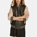 This women’s varsity jacket is built with a genuine cowhide leather body and polyester sleeves, which makes it comfy and light. The mix of fabrics makes it practical for all-day wear without losing its stylish look.