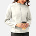 It has two inside pockets and two outside pockets, giving you enough space to carry things like your phone, wallet, or keys. This bomber jackets for women design is both practical and trendy.