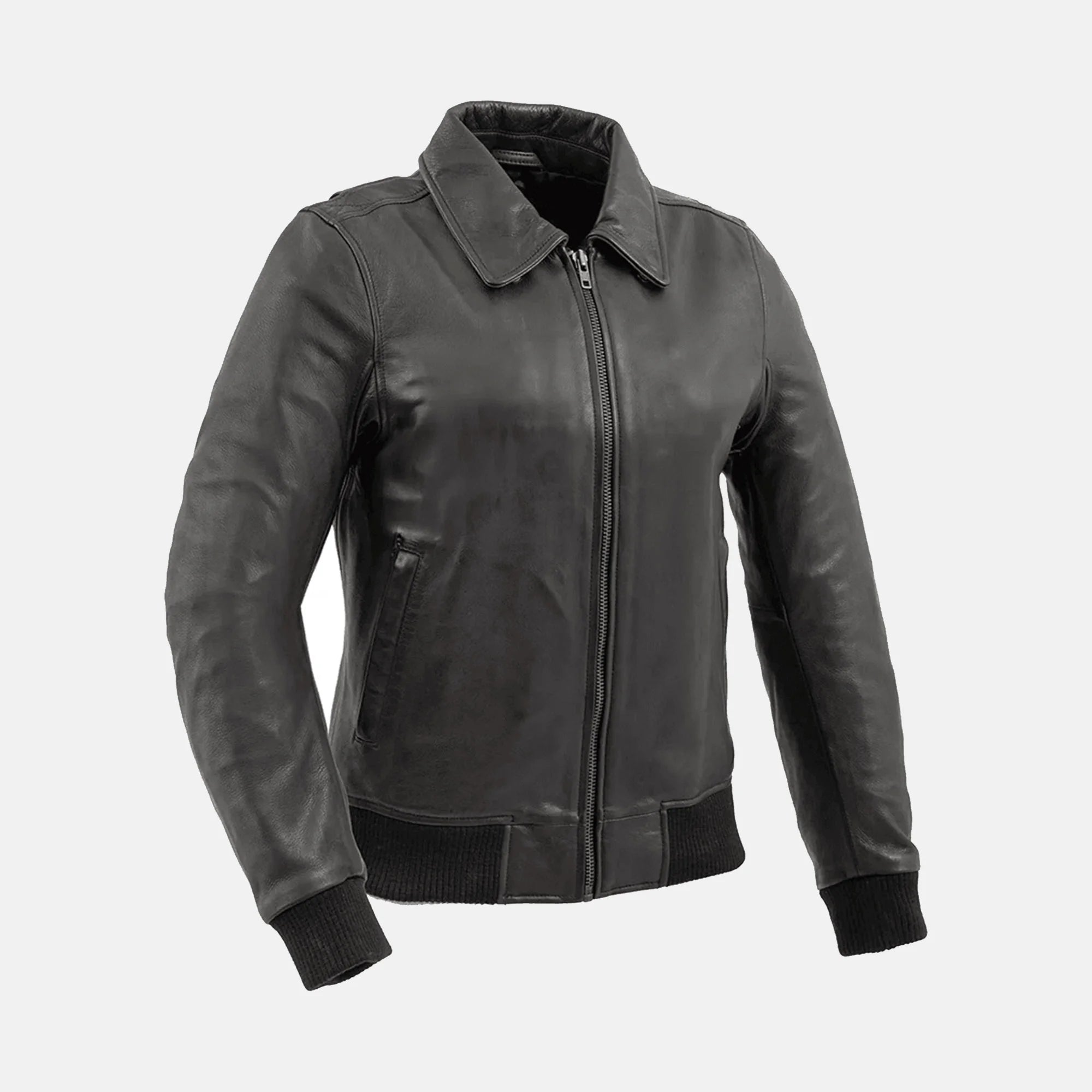 This bomber women's leather jacket is offered in fashionable colors like brown, brown/white, and maroon/white, letting you show off your unique sense of taste. It goes with almost any outfit because the colors are basic. You can dress it down with jeans and trainers or up with a dress and boots.