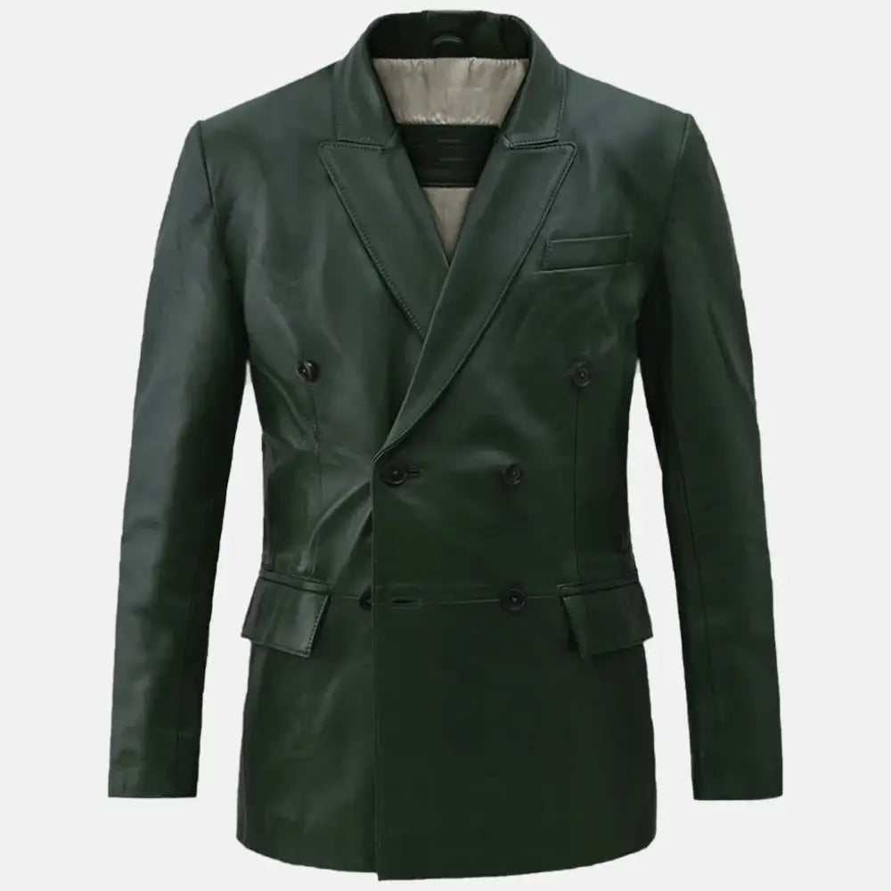 Available in a solid green shade, this mens leather blazers stands out and is great to pair with different outfits. Great for anyone looking to upgrade their style with a simple leather blazer men.